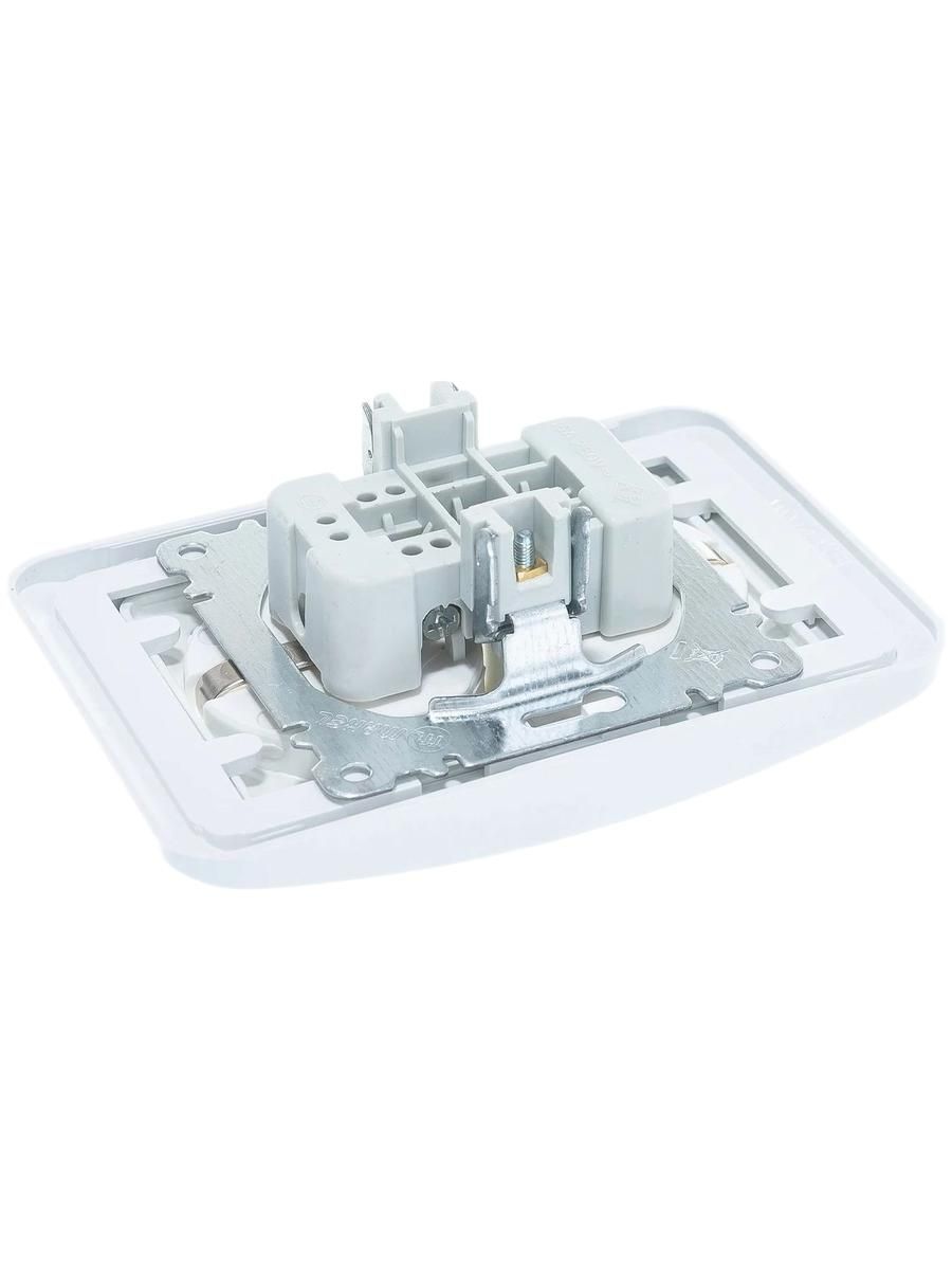 Эта розетка обладает следующими характеристиками: монтаж встраиваемый, что делает её практически незаметной в интерьере. Количество гнезд составляет 2, а количество постов — 1. Розетка поддерживает максимальный ток 16 А и рассчитана на номинальное напряжение 250 В. Изготовлена из пластика в белом цвете, что позволяет ей органично вписываться в любой дизайн помещения. Уровень защиты IP20 гарантирует её использование в сухих местах.