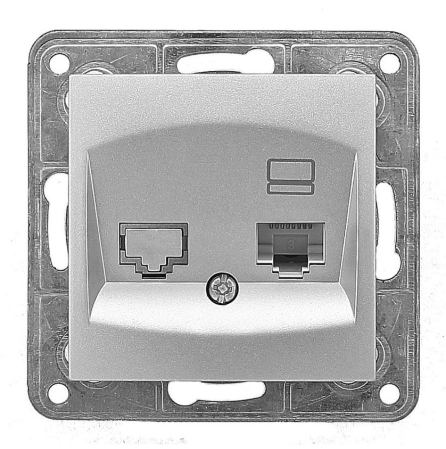 Для скрытого монтажа. Предназначена для подключения компьютера к Интернету через интерфейс RJ45 с помощью кабеля UTP Cat.5e. Накладка - сверхпрочнй поликарбонат, корпус механизма - огнеупорный полиамид, суппорт - сталь