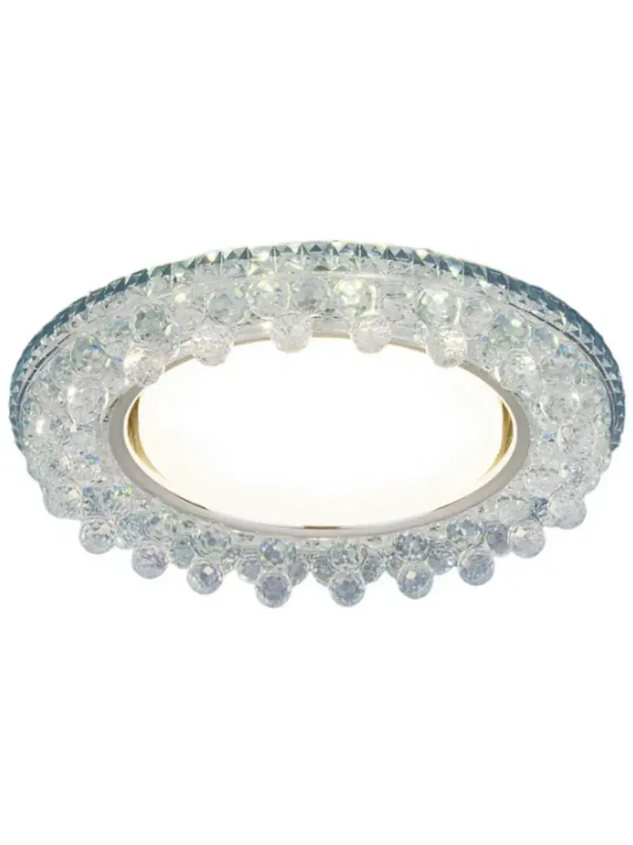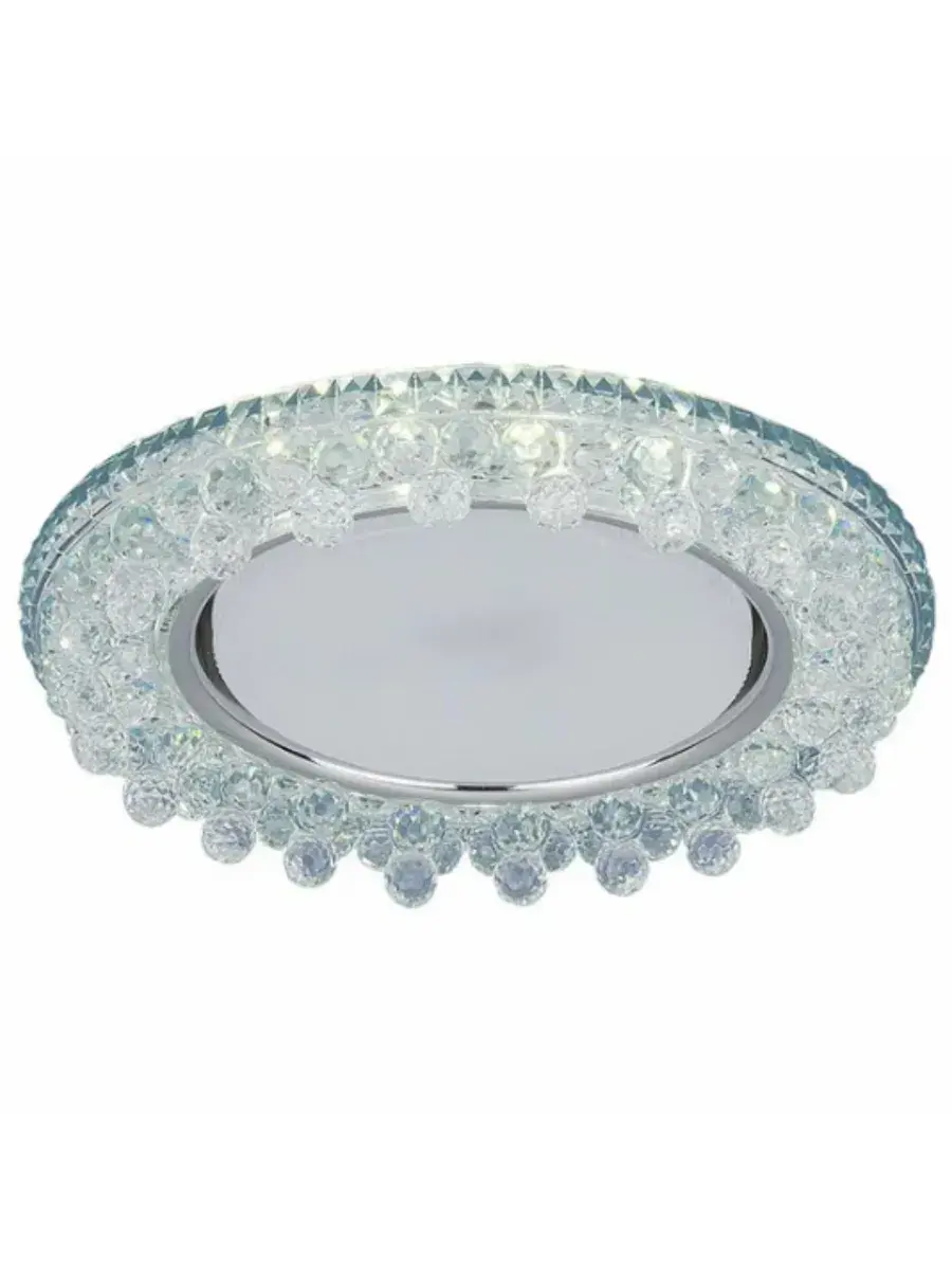 Точечный светильник со встроенной LED подсветкой 3025 GX53 CL используется для создания основного и дополнительного освещения и в качестве эффектных декоративных элементов светового дизайна. Хрустальный декор светильника преломляет свет и создает яркие и переливающиеся блики. Потолочный светильник работает в трех режимах: подсветка, лампа и подсветка лампа. Для дополнительного источника света в интерьере предлагаем купить встраиваемый светильник, который легко монтируется в натяжные и подвесные потолки и гипсокартонные конструкции. За счет небольшой погружной глубины светильник существенно экономит высоту потолков.