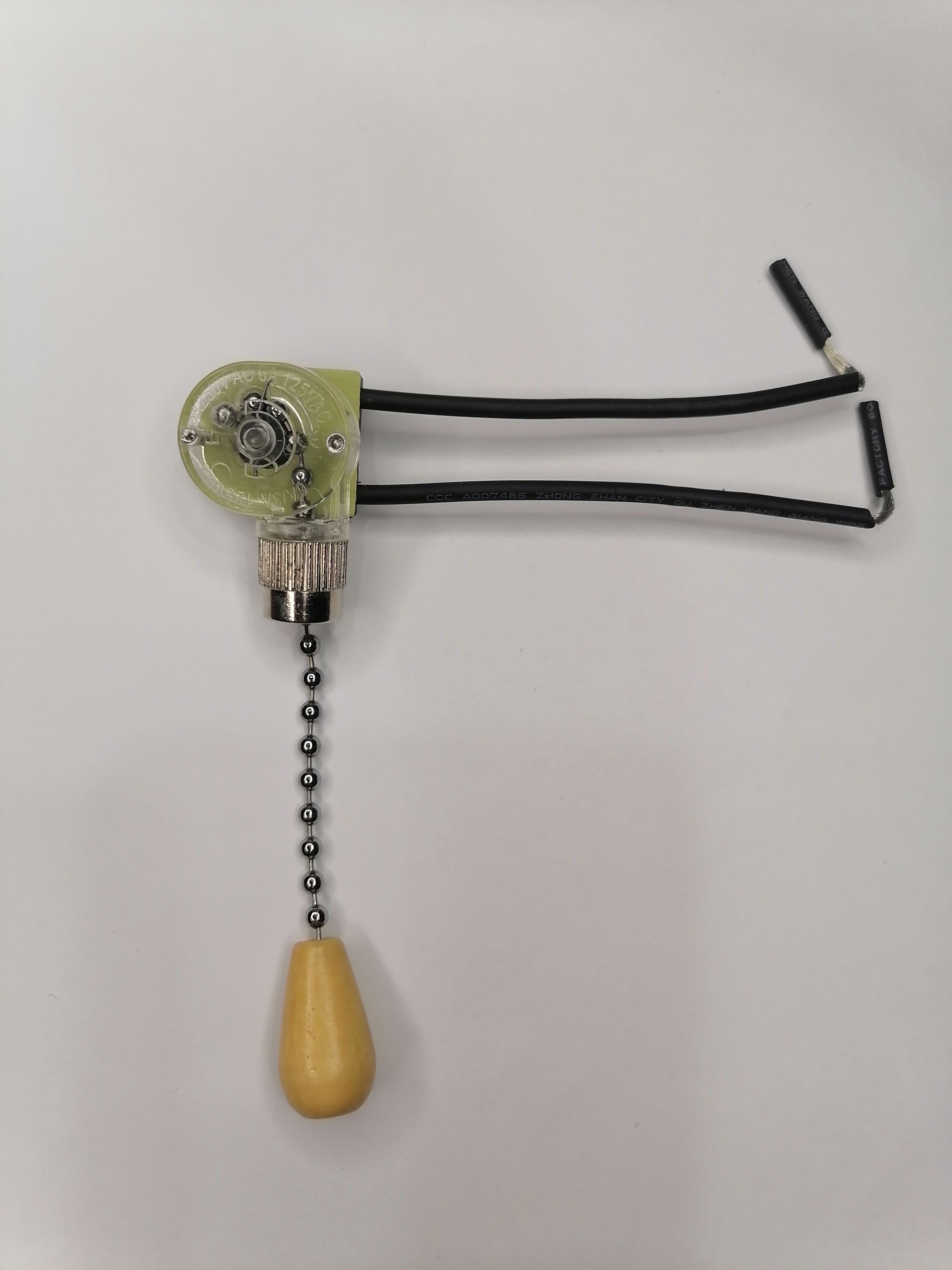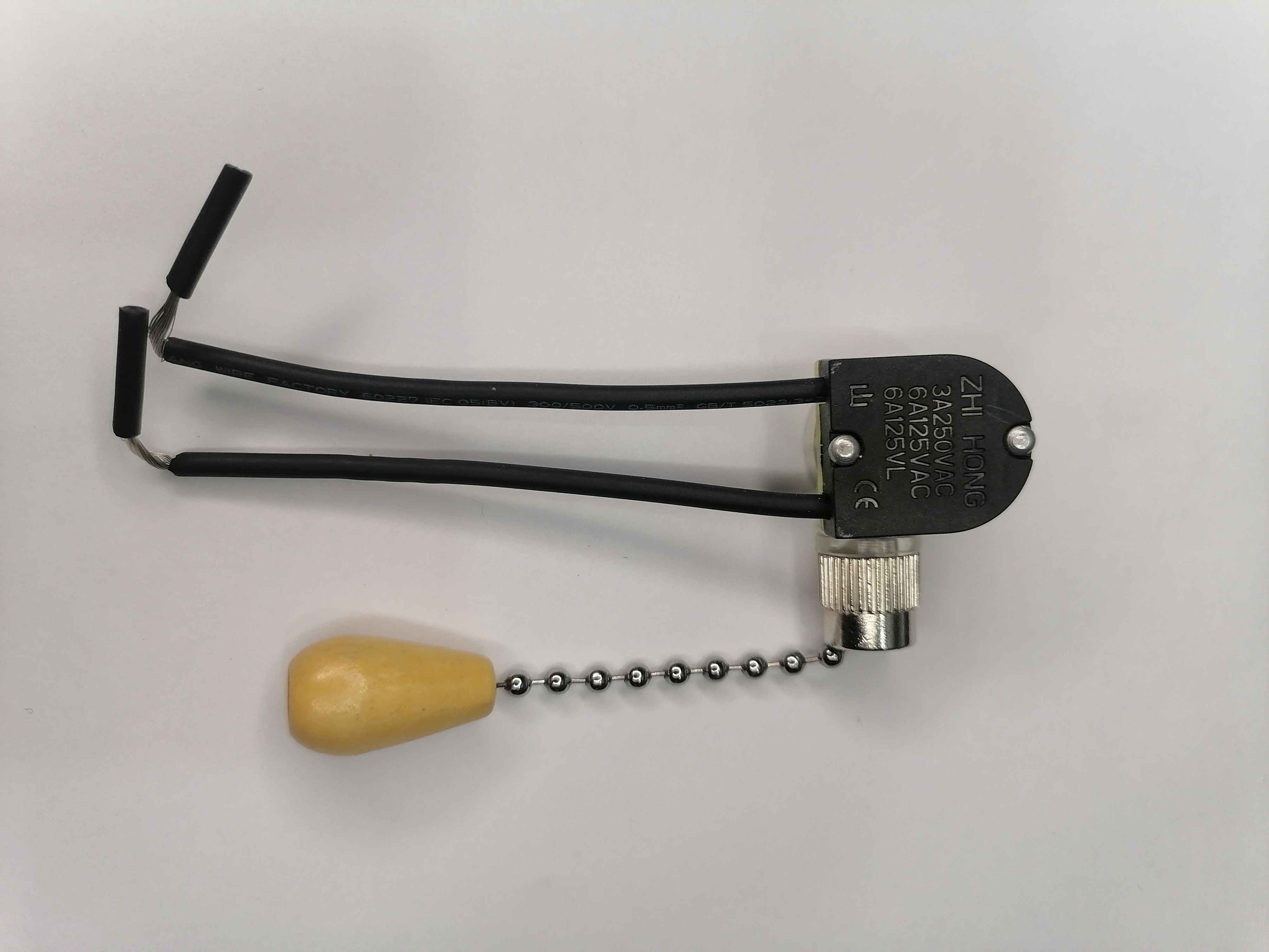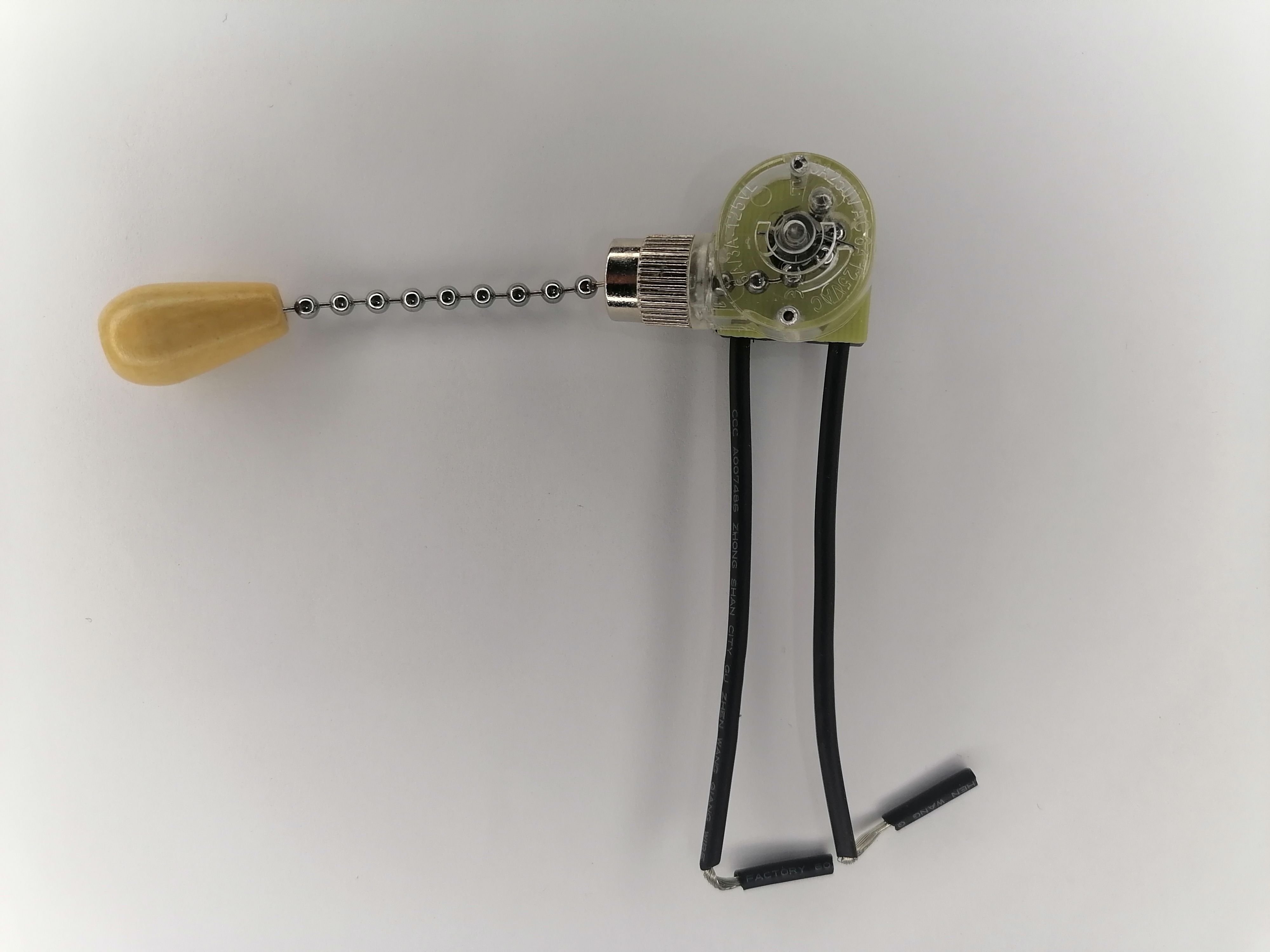 Этот выключатель изготовлен с использованием прочного материала, что обеспечивает его долговечность и надёжность. Механизм с цепочкой облегчает процесс переключения, при этом конструкция позволяет выполнить монтаж самостоятельно, без специальных навыков. Серебристый цвет корпуса и изящная цепочка придают устройству элегантный вид.